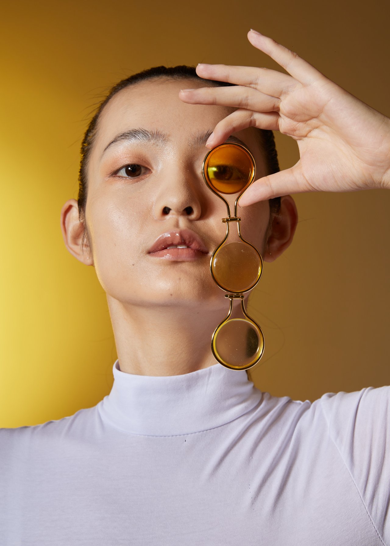 In the <Warmth> series, I become lost in thought when I see the warm yellow tone, feeling very warm, and the longer I look, the blurrier my vision becomes. I find this feeling very fascinating, so I wanted to express it through a series of accessory works that transform glasses. The halo of the sun gave me inspiration, with three different colours from light to dark. Therefore, I used UV glue as the main material for the product. The transparent and translucent properties of UV glue effectively express the concept I want to convey.