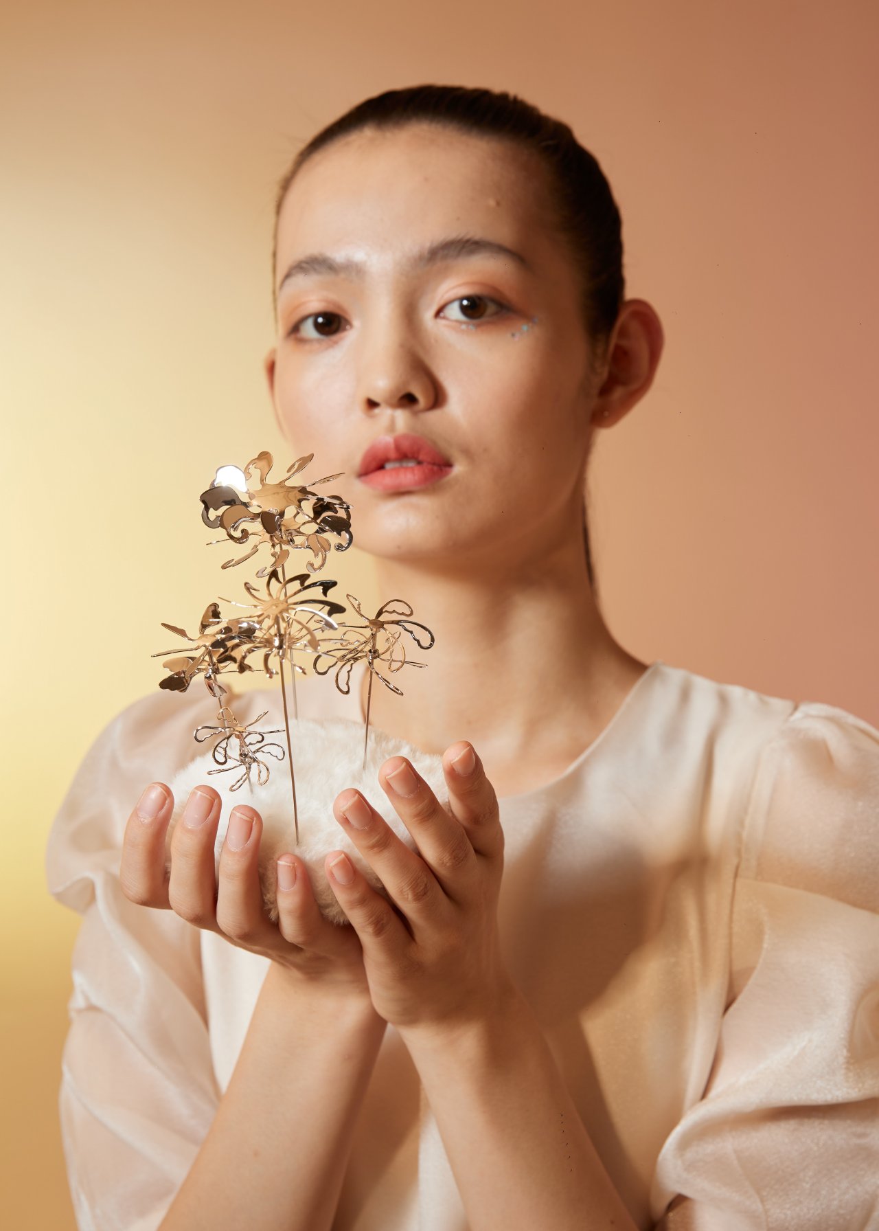 The series <Twinkle Drops> was inspired by a scar on my arm left by an indwelling needle during my illness. This indwelling needle remained on my arm during my year of hospitalization. As time went by, I gradually believe that it was more like a piece of jewellery worn on my arm. Therefore, I began to think about the possibility of transforming a medical device into jewellery.
