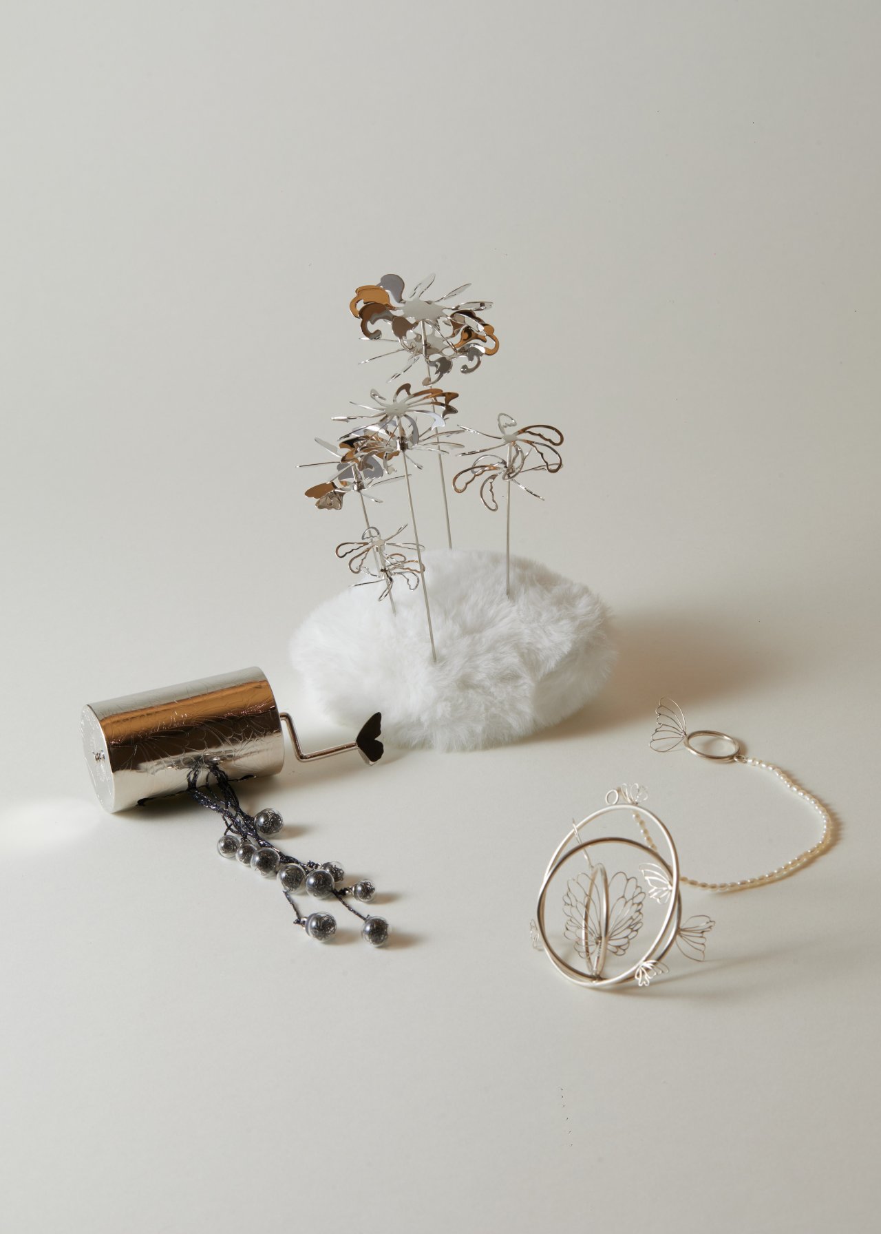 銀、珍珠、橡膠管