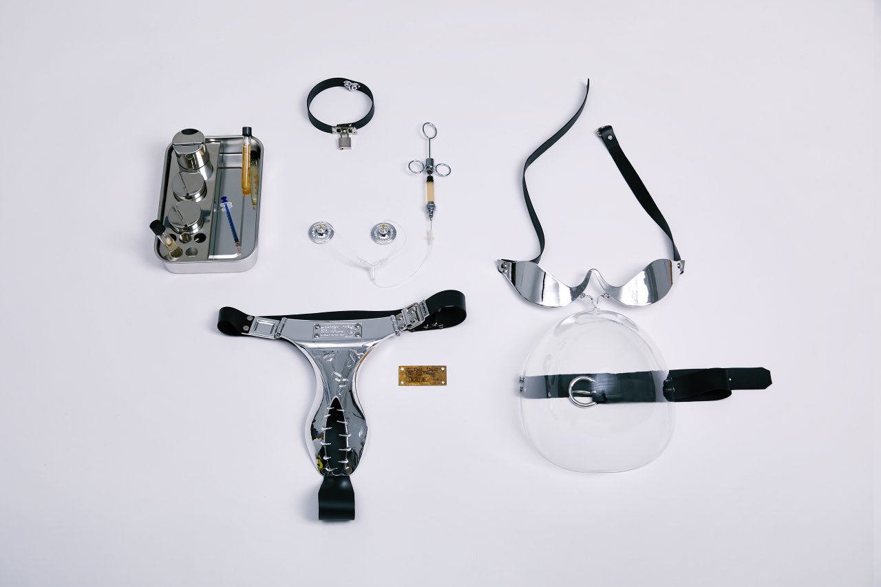 <Blessed Ovum> describes women’s situation in a society with highly developed technology and extremely low fertility. Inspired by the novel The Handmaid's Tale, which talks about the authority using political power to control the country's fertility rate. As a result, I designed Blessed Ovum as an attempt to reflect that women are unavoidably subjected to reproductive exploitation. There are 5 pieces in this series, including a chastity belt, an ovum extractor, a sex detection collar, a decorative pregnancy belly, and an in vitro cultivation installation.