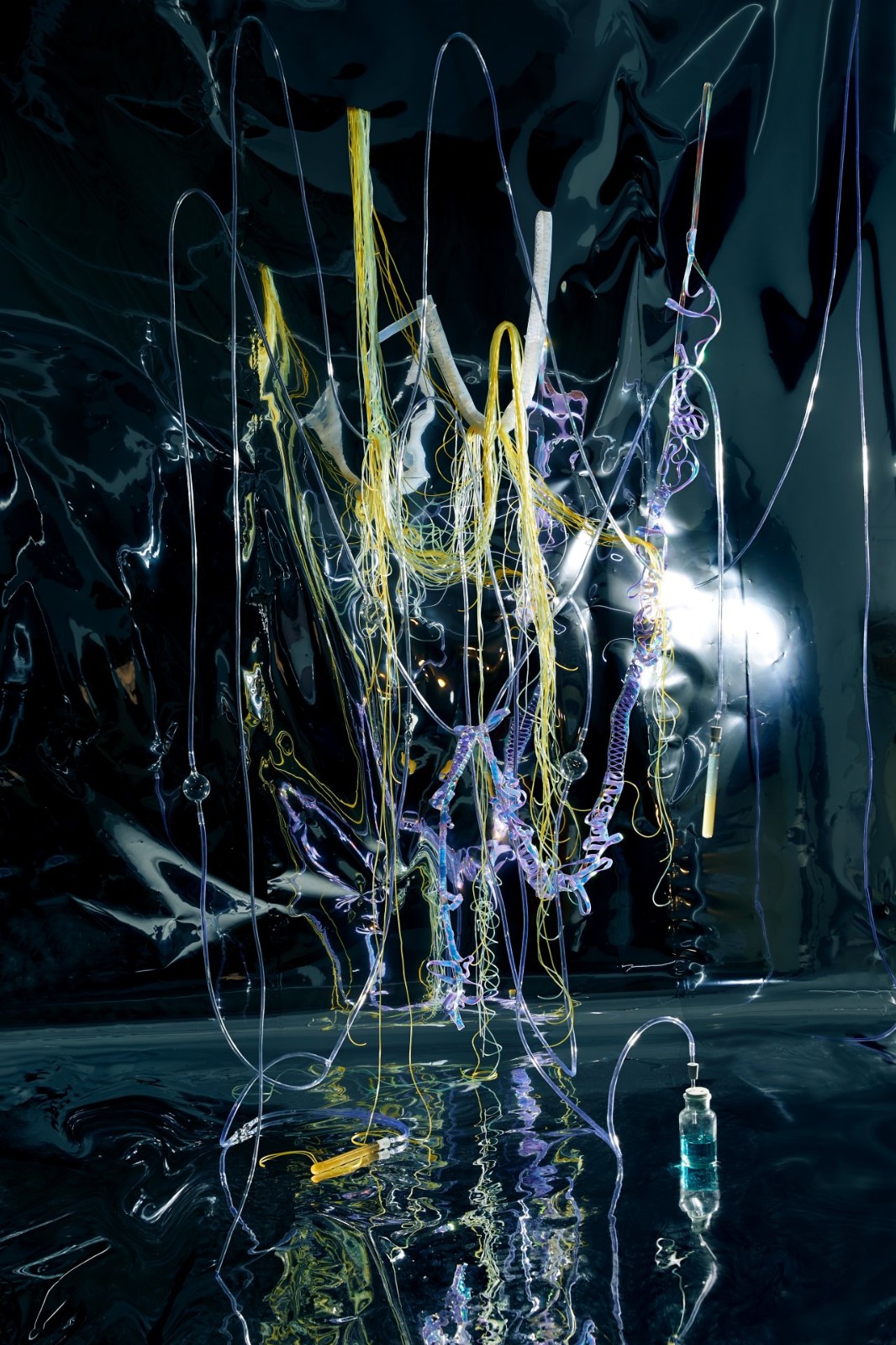 <The Journey of Microplastics> includes two different branches, The Coral Bone and Cage, their core idea is to draw people's attention to microplastic pollution and the urgent hope for a sustainable transformation of the fashion industry. Microplastic pollution is a rising issue that threatens the environment and human health.