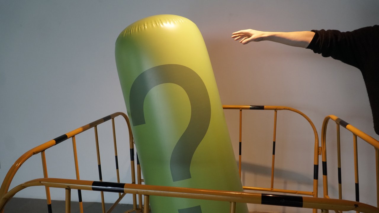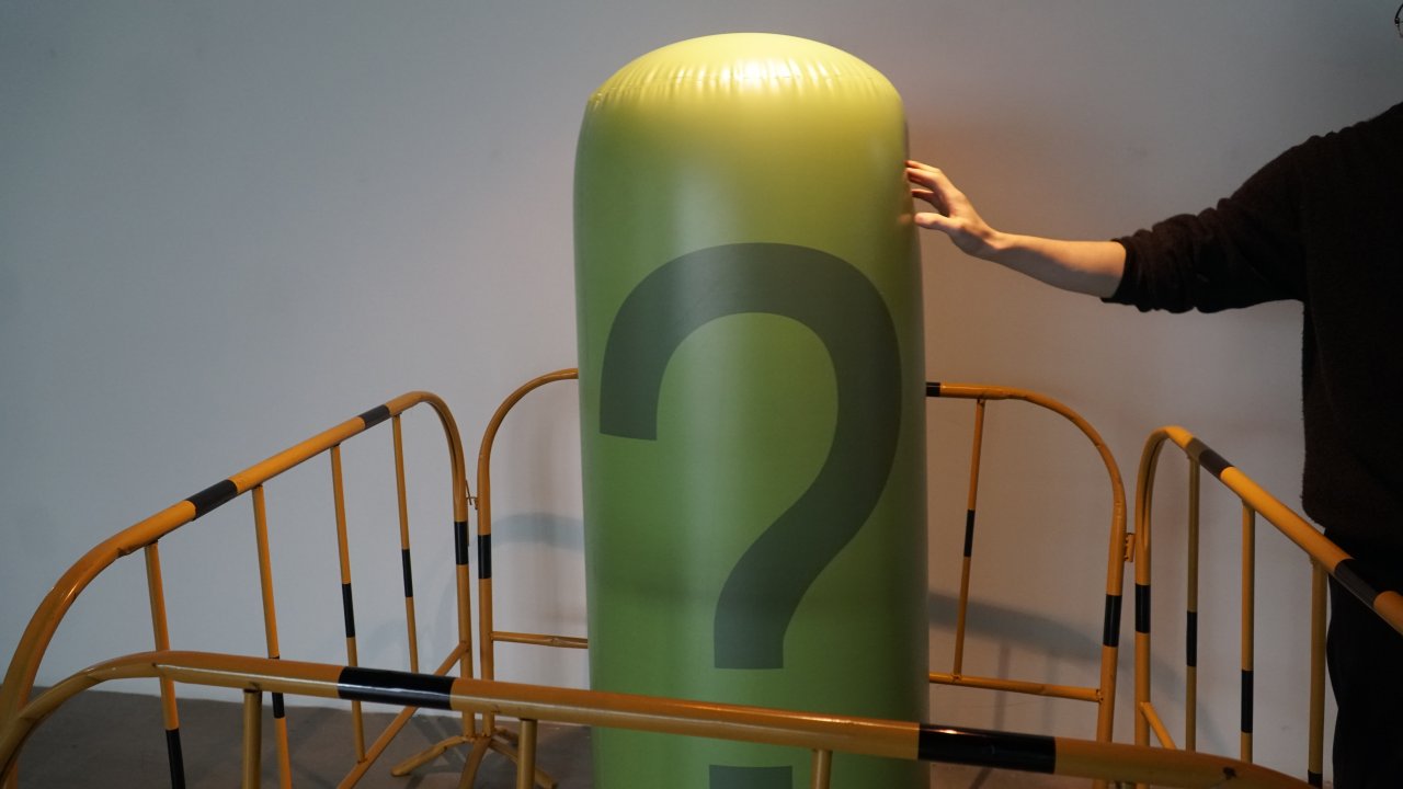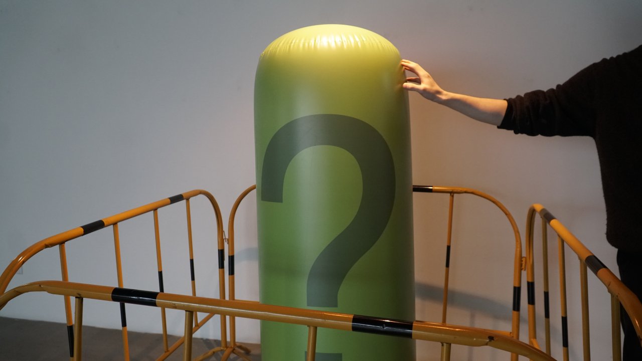 我的創(chuàng)作經(jīng)常受到生活的啟發(fā)。在上海疫情封控期間,有限的行動空間放大了中國公共制度和輿論控制的問題。我制作了一個裝置作品結合影像播放《紅 黃 綠》。裝置中巨大的問號象征著我們心中的所有疑慮。被黃色柵欄囚禁的焦慮的“我們”籠罩在權力的紅燈中,希望喚醒觀眾反思當前的政策和生活條件。