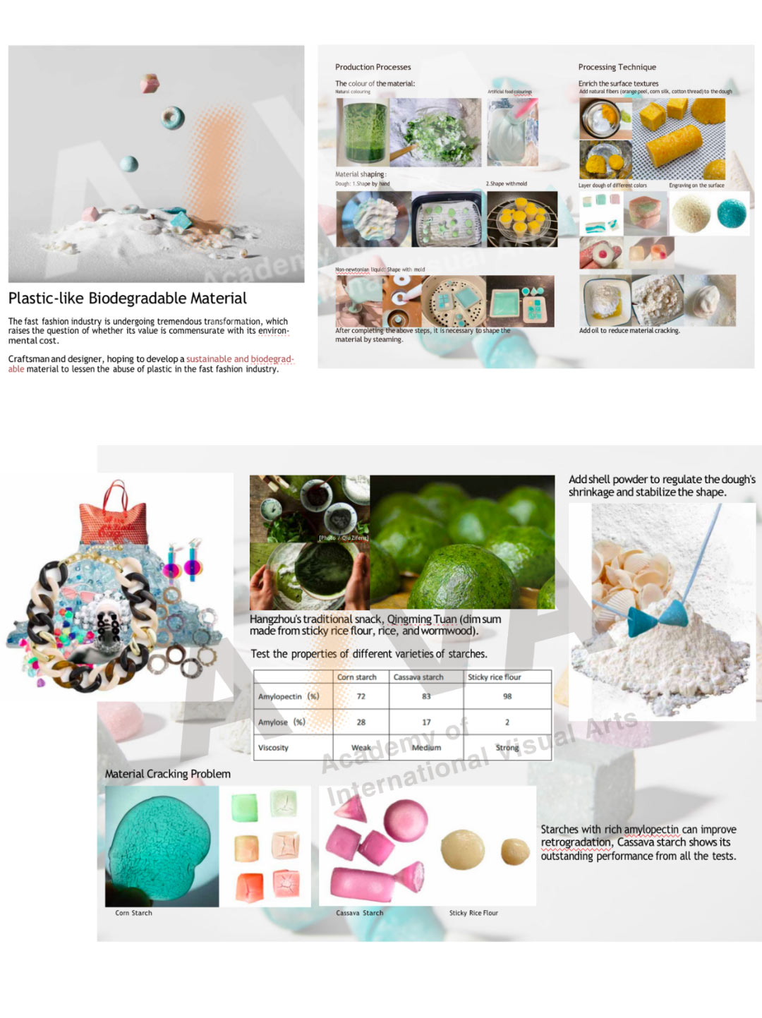 “我想做這個項目是基于現在快時尚產業產生的環境污染和資源浪費。但是,由于目前限制快時尚產業發展是不太現實的,所以我想從我們配飾材料的角度出發來制作一些可降解的材料。”