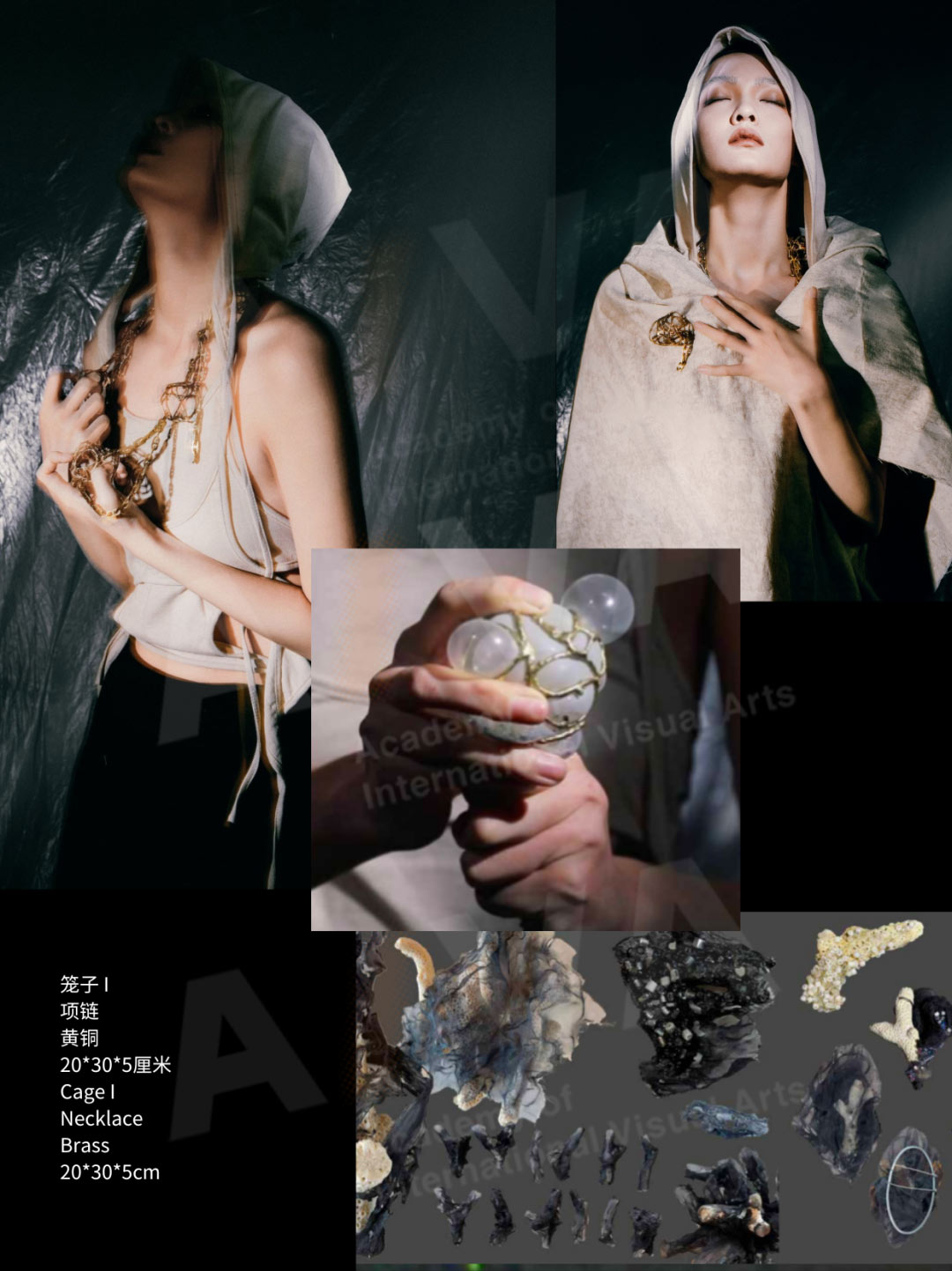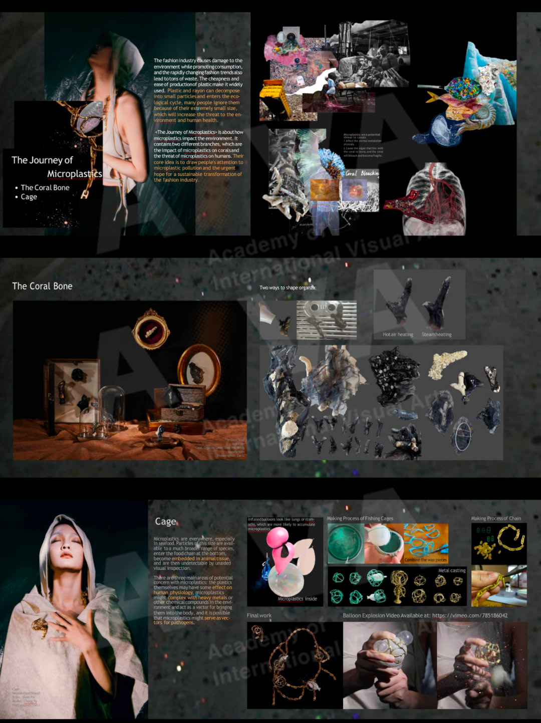 《微塑料之旅》項目有三個部分:珊瑚骨和籠和可降解材料研發。其作品核心思想是喚起人們對微塑料污染的關注以及對快時尚產業可持續轉型的迫切希望。當下,微塑料污染是一個日益突出的問題,具有對環境和人類健康的潛在威脅。