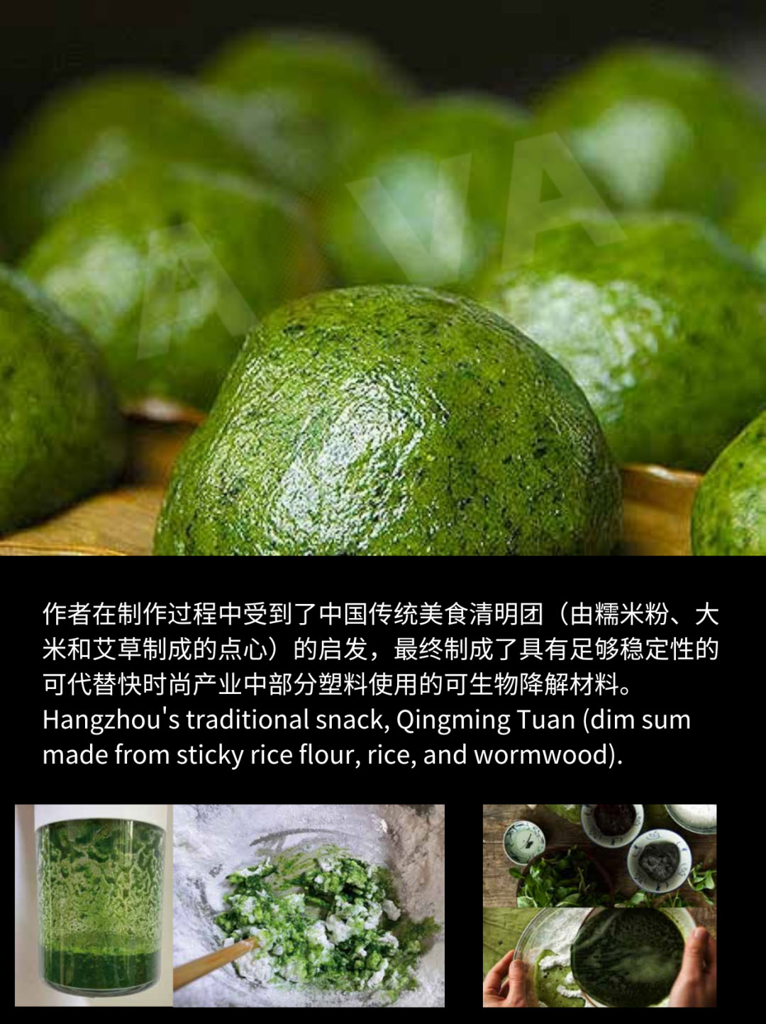 “制作可降解塑料的靈感來源是我家鄉的一種糯米點心,這個點心會在蒸制冷卻之后變得很堅硬。所以我想他有可能可以成為一種塑料的代替品,這個項目我陸續做了半年,因為面粉的制作過程很復雜,他也可能會在干燥過程中開裂和變形。我嘗試了不同的面粉品種,也試了很多不同的方案,最后得到了一個比較穩定的配方。這些材料可以通過土地掩埋在15天左右降解,我覺得他很有發展的潛力,在未來的研究生學習中我也會不斷完善改進這個材料的。”