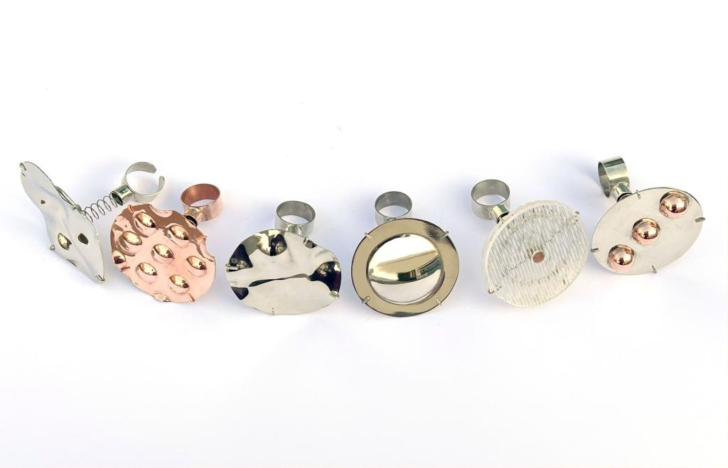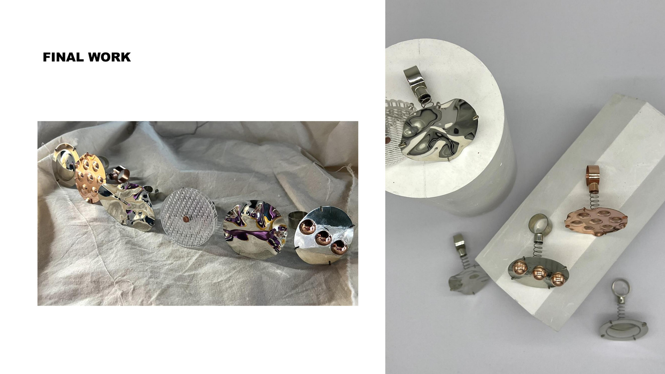 I am obsessed with metal materials and enjoy the process of working with metal to explore its possibilities. Life has always provided me with many inspirations, and the Addiction series was born from my observation of people’s daily use of electronic devices. I incorporate optical illusions, such as moiré patterns, into my work. The ring may cause visual discomfort when it shakes while the wearer swiping the screen with their thumb. This piece of jewellery prompts the wearer to contemplate their dependence on mobile phones.