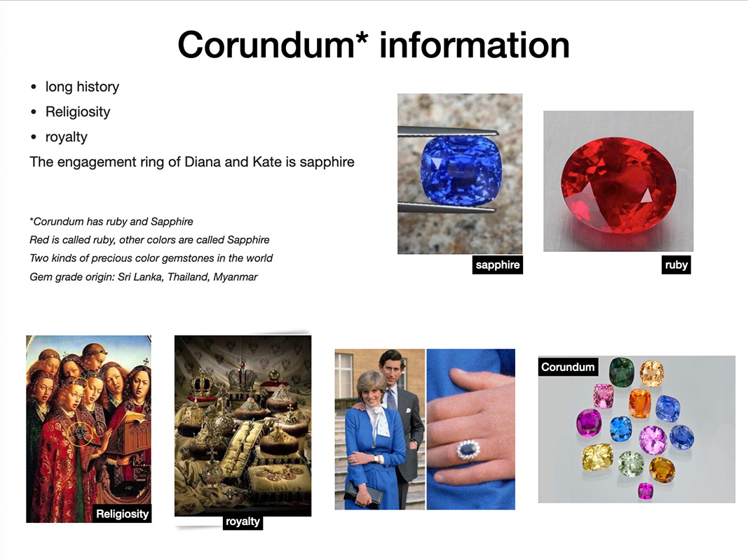 I have studied and worked in the jewelry industry for 12 years. During these years, I knew the most famous ruby ‘Black Prince's Ruby’ on the crown of the British queen was found to be a spinel in 1660. ‘The Ocean Star’ of <Titanic> in the movie witnessed a beautiful love story, but people were debating whether it is sapphire or tanzanite. Corundum and its similar gemstones have become a heated market in China in recent years. So how do people distinguish their similarities and differences? What do you think of their value? Why people want to buy them? These questions intrigued me to start my research. I have learned that people paid more attention on the sense of ritual and the symbolic significance of corundum. But actually, the consumers are very traditional.