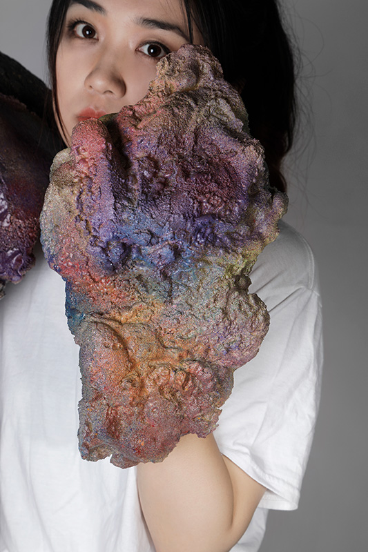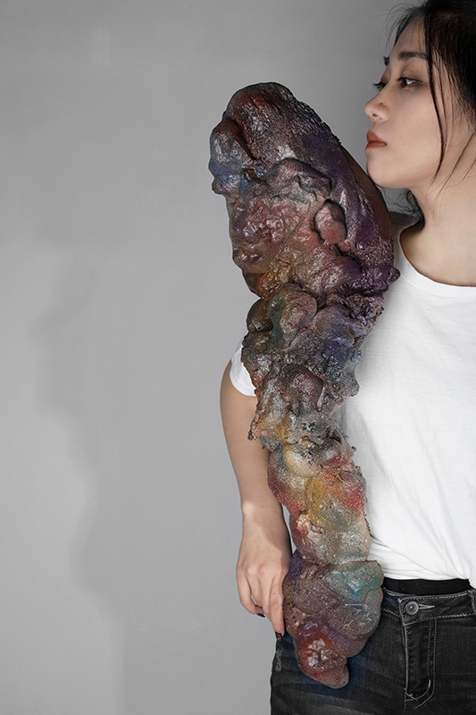 My works are mainly about the exploration of myself. My first work <The Lost Time> was made to keep my childhood in mind. To retain the childhood memories better, I made my lost memory pieces into brooches to build a feeling that all the childhood memories have never gone. My second work <Unreachable> was produced after I explored my body. I use jewellery to create an unattainable visual effect on my body. My third work <Original Aspiration> is a work showing my ideal ego state. I combined a variety of materials, and finally showed the feeling of self-loyalty and stayed true to the original self.