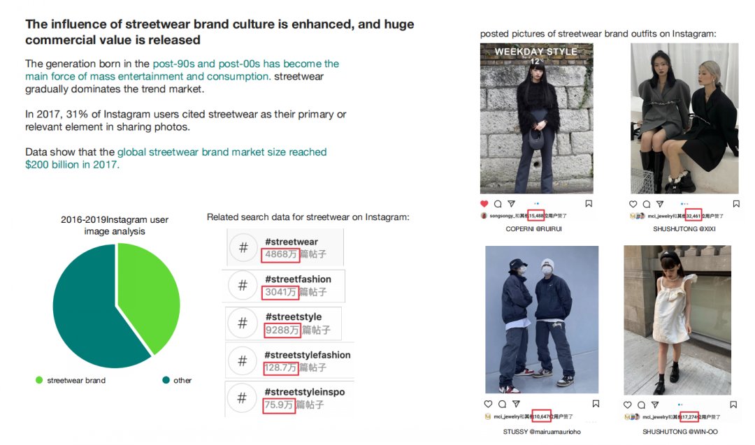 我的第三個(gè)項(xiàng)目靈感來(lái)源于《2018中國(guó)城市時(shí)尚指數(shù)報(bào)告》中成都被評(píng)為與上海齊名的“中國(guó)時(shí)尚一線(xiàn)城市”的報(bào)告內(nèi)容。所以我試圖在我的項(xiàng)目中探討研究成都成為中國(guó)潮流標(biāo)簽的原因。從成都的基本地域情況,人民的作息習(xí)性、消費(fèi)觀(guān)價(jià)值觀(guān),以及成都潮牌文化的發(fā)展去分析研究成因。為此,我進(jìn)入上海時(shí)裝周實(shí)習(xí)了兩周的時(shí)間,研究成都服裝零售市場(chǎng)的市場(chǎng)推動(dòng)因素是什么?成都電子商貿(mào)業(yè)務(wù)興旺的原因?成都市場(chǎng)如何劃分的更細(xì)致了以及成都多品牌營(yíng)運(yùn)的方式?最后,我從發(fā)展和趨勢(shì)兩方面總結(jié)了成都潮流市場(chǎng)的未來(lái)走向。