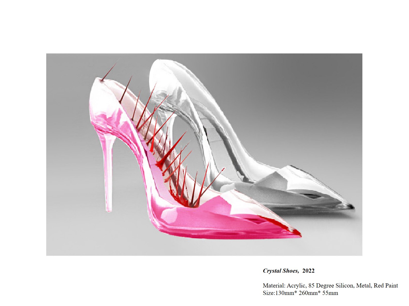 The series "Different sides in fairy tales" is from my reinterpretation of fairy tales. In the previous days, we always understood the story and judged good and evil from the perspective of the main character, but neglected the perspective of other characters. The works "Apple Slice" and "Crystal Shoe" take the apple in Snow White and the crystal shoe in Cinderella as the main design elements, and use visual presentation and material contrast to show the meaning of the same object to different characters.